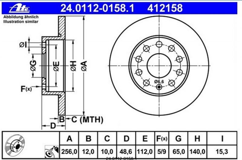 ZAVORNI DISK GOLF 03-13 ZAD. FI:256mm 24.0112-0158.1 DF950 08.9488.11 562238JC 412158 24.0112-0158.1 10142847 1K0 615 601 AC